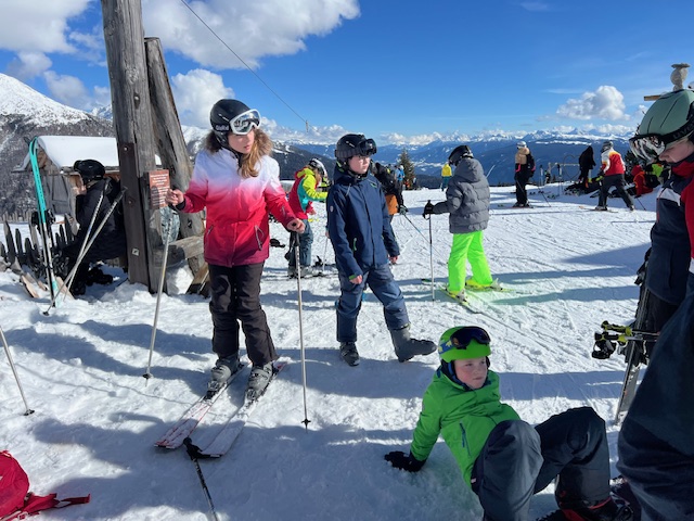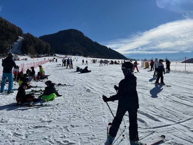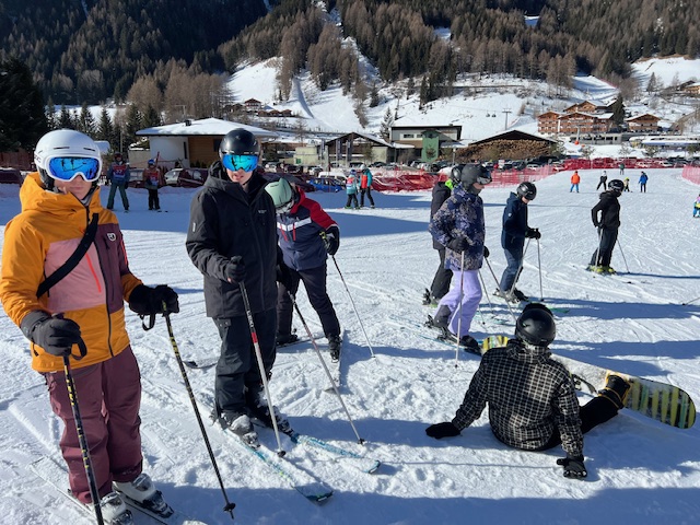 24 mutige Schülerinnen und Schüler haben sich getraut, mit Frau Stöver, Herrn Rommel und Herrn Lenz die Südtiroler Alpen zu erkunden. Neben ein paar Profis werden viel Anfänger fit auf Skiern und Snowboards gemacht. Bei schönstem Wetter konnten die ersten Erfahrungen gesammelt werden. Nun muss bei den Snowboardern noch ein wenig darauf geachtet werden, dass sie nicht nur auf den Pisten herumliegen!